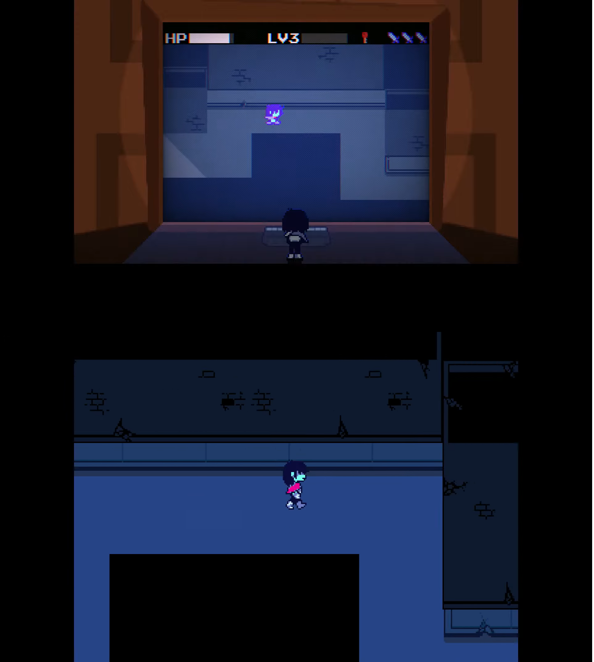 Nota sui livelli: a prescindere da tutto questo, il livello nei Dark World sembra essere diverso dal LV/LOVE di UT e il Light World (Dove infatti il LV di Kris rimane sempre 1). Sconfiggendo i nemici con la violenza fuori dalla weird route (solo a partire dal ch2) appare il messaggio “You became stronger” e anche lì gli HP e altre stats aumentano, ma in questa route sembra il focus stia diventando Noelle. Inoltre, il livello nel Dark World aumenta automaticamente nel corso dei capitoli: nel capitolo 2 siamo di Livello 2, alla fine di esso saliamo a livello 3 dove rimarrà così per tutto il capitolo 3, e infine nel ch4 saremo di livello 4.