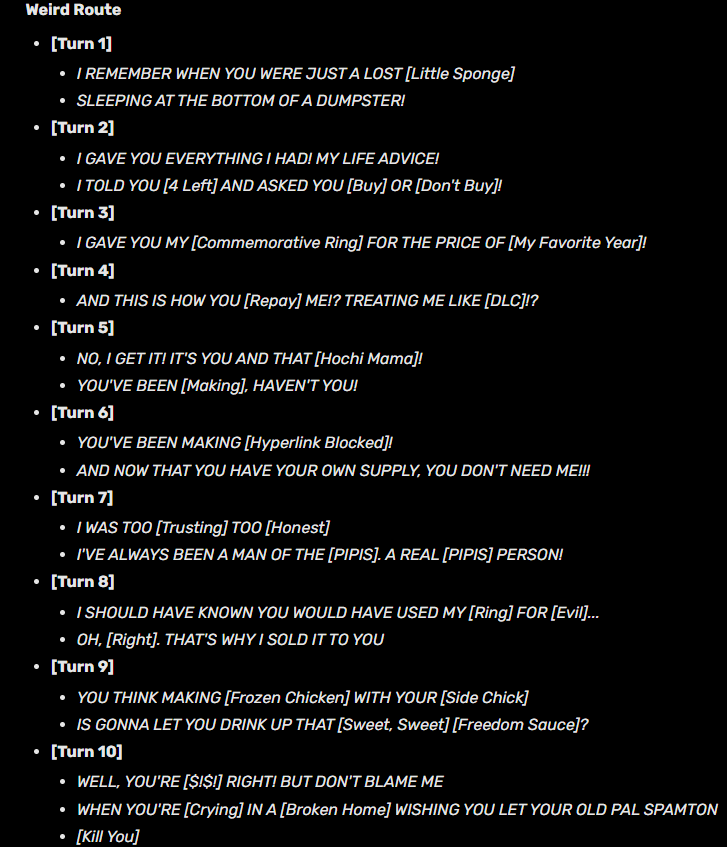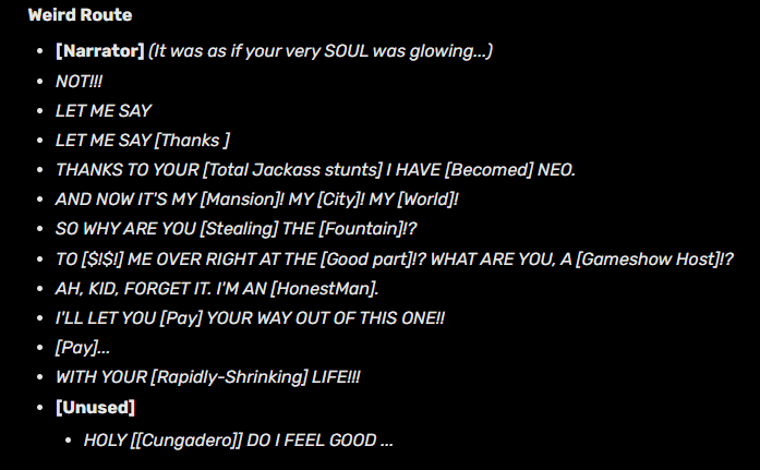 Questo è quanto per quanto riguarda la Weird Route. Ora, procedi.